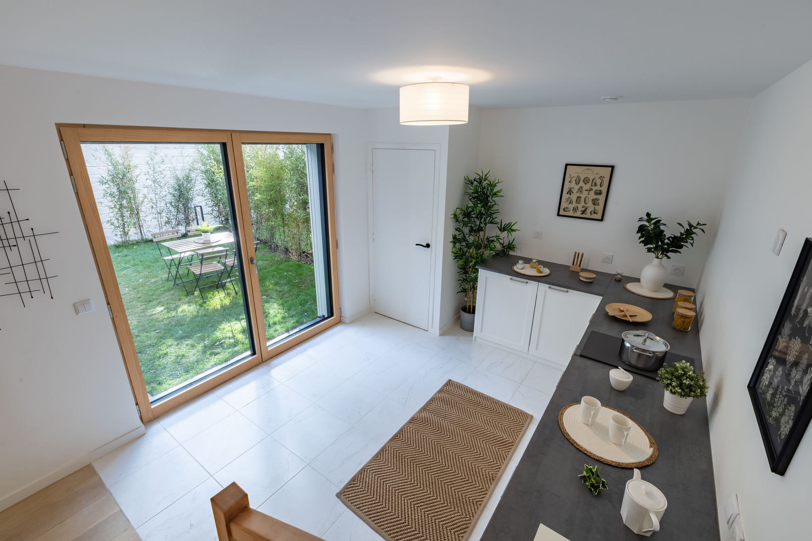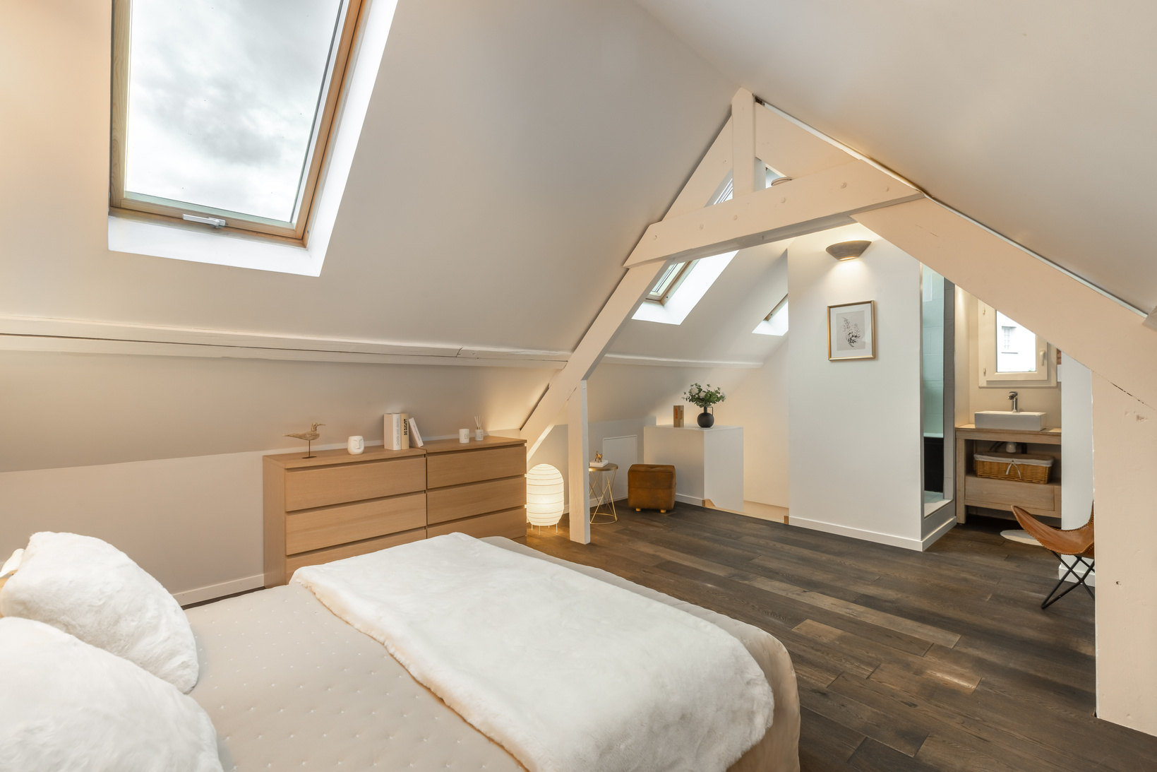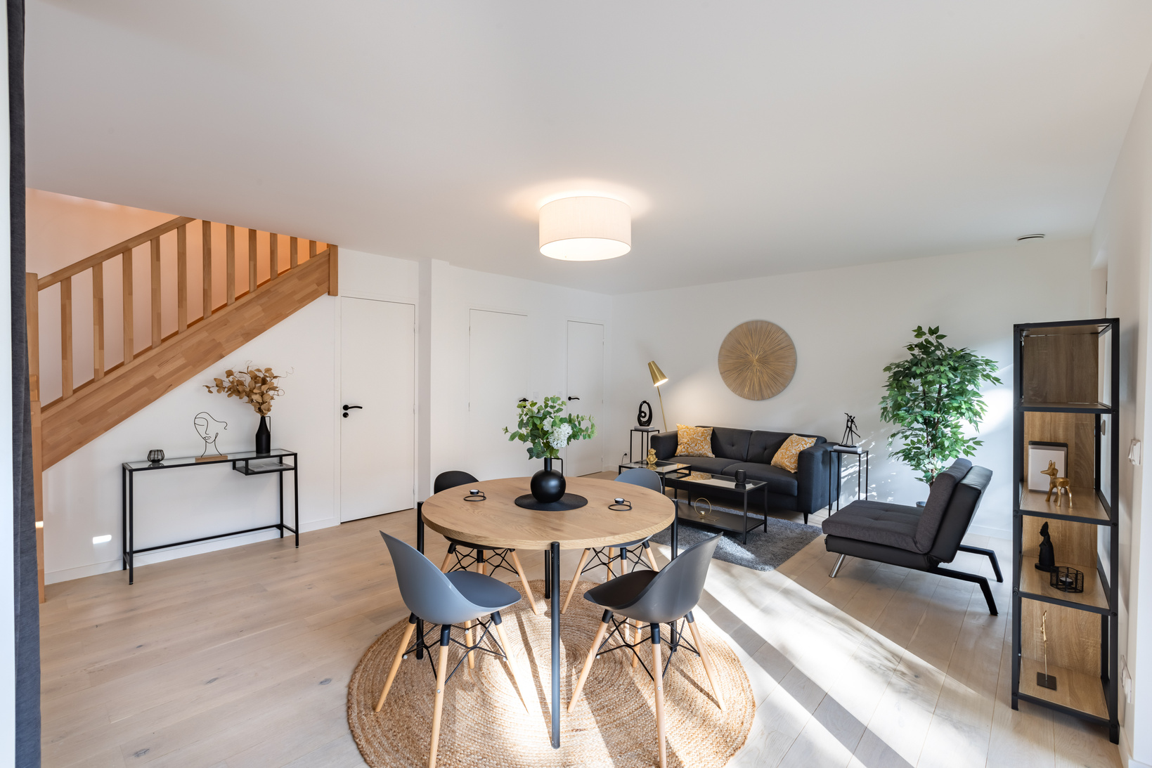 Mise en scène d’un loft témoin à Montreuil dans un lotissement composé de quatre biens.
